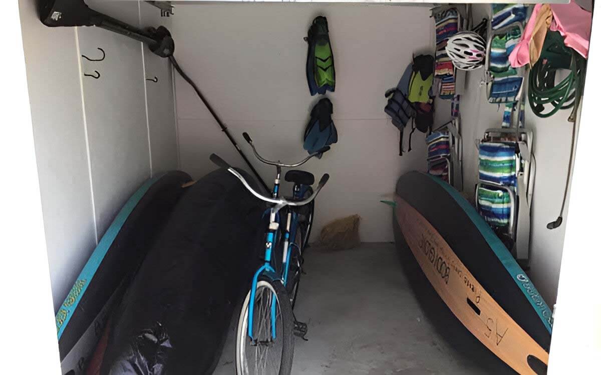 There is 2 Body Glove Performers paddle boards, 2 two people kayaks, 2 easy rider bicycles, 2 life jackets, 2 helmets and several snorkeling goggles and fins for your enjoyment.