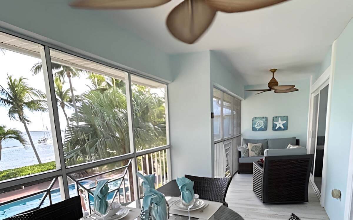 The property is located in Phase 1 of the Kaibo Yacht Club and is in a very quiet part of the Island. Enjoy views of the ocean from the second floor on your screened in patio right in front of the pool and hot tub. This small complex of only 20 units offers uncrowned white sand beach with ample lounge chairs to relax in. No crowds here, unlike on 7 Mile Beach!!