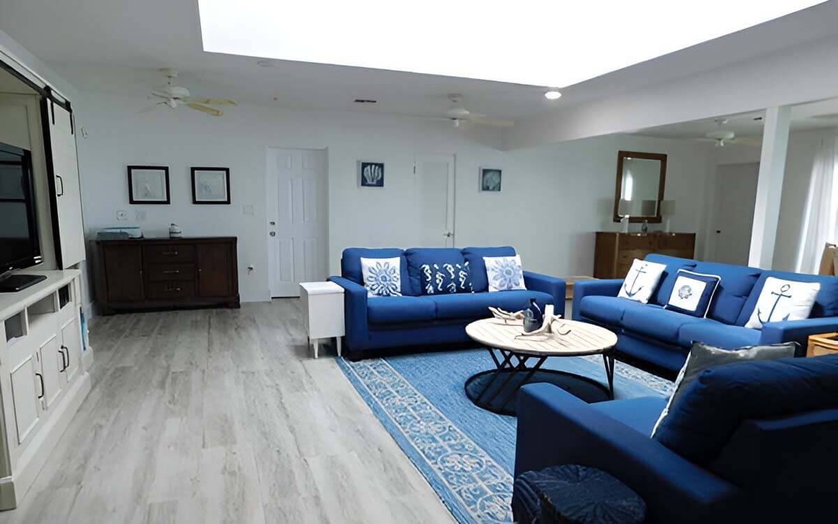 — The recently redecorated interior gives the home an airy, beach house feel without sacrificing luxury or comfort.