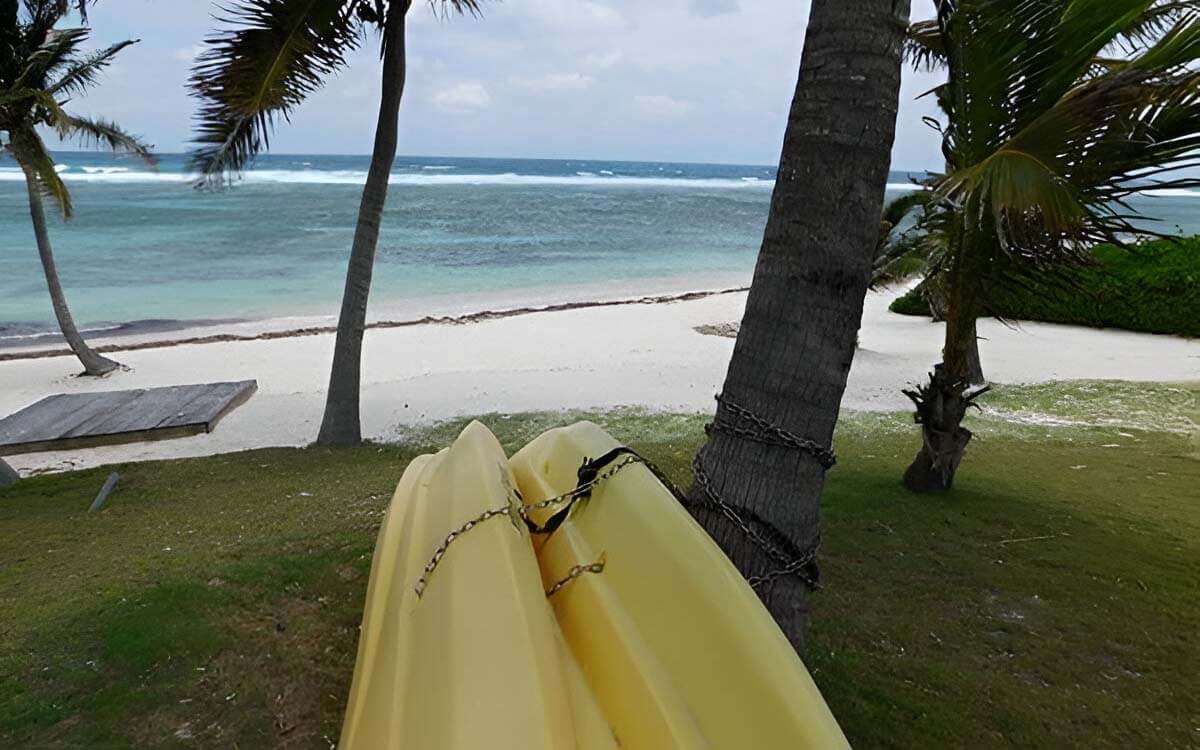 A single story with no steps, a private pool just a few feet from the back door, a private beach just a few steps further and a private reef for snorkeling or diving just off the private beach. There is even a dive buoy just outside the reef. The home comes with kayaks and bicycles all included for your pleasure.