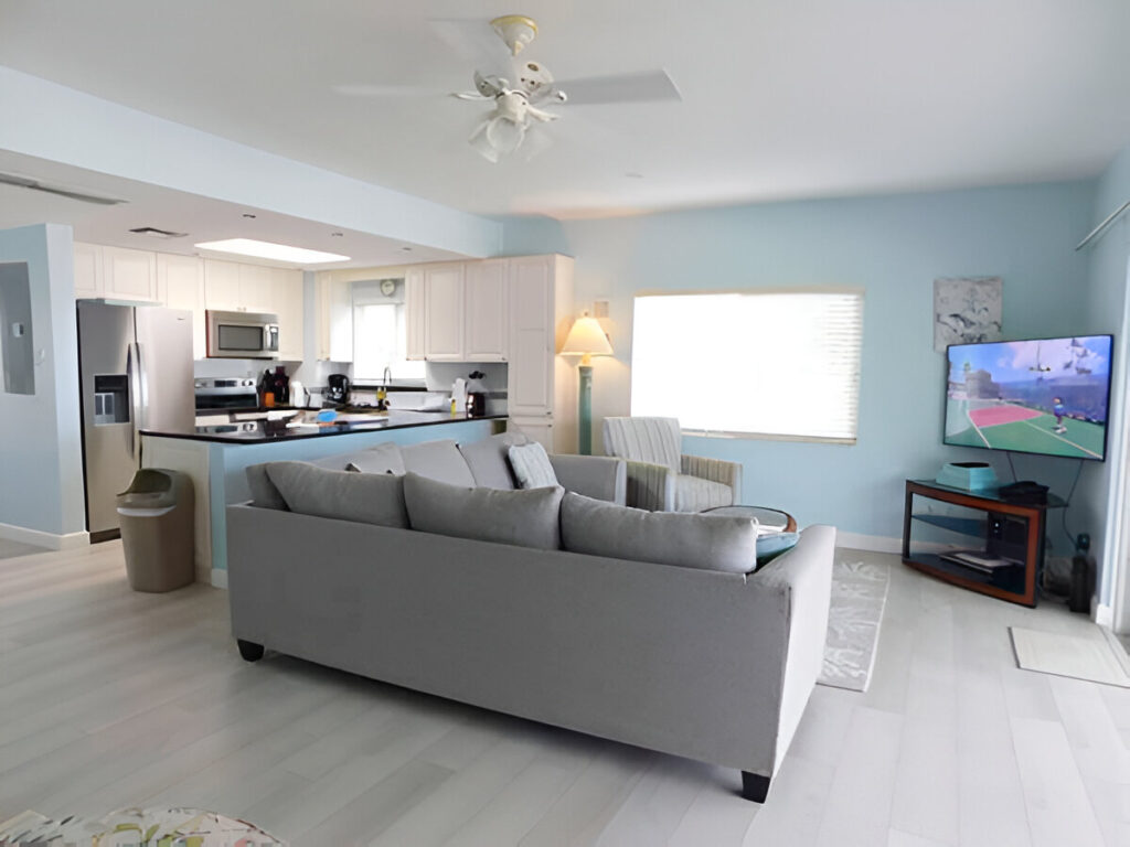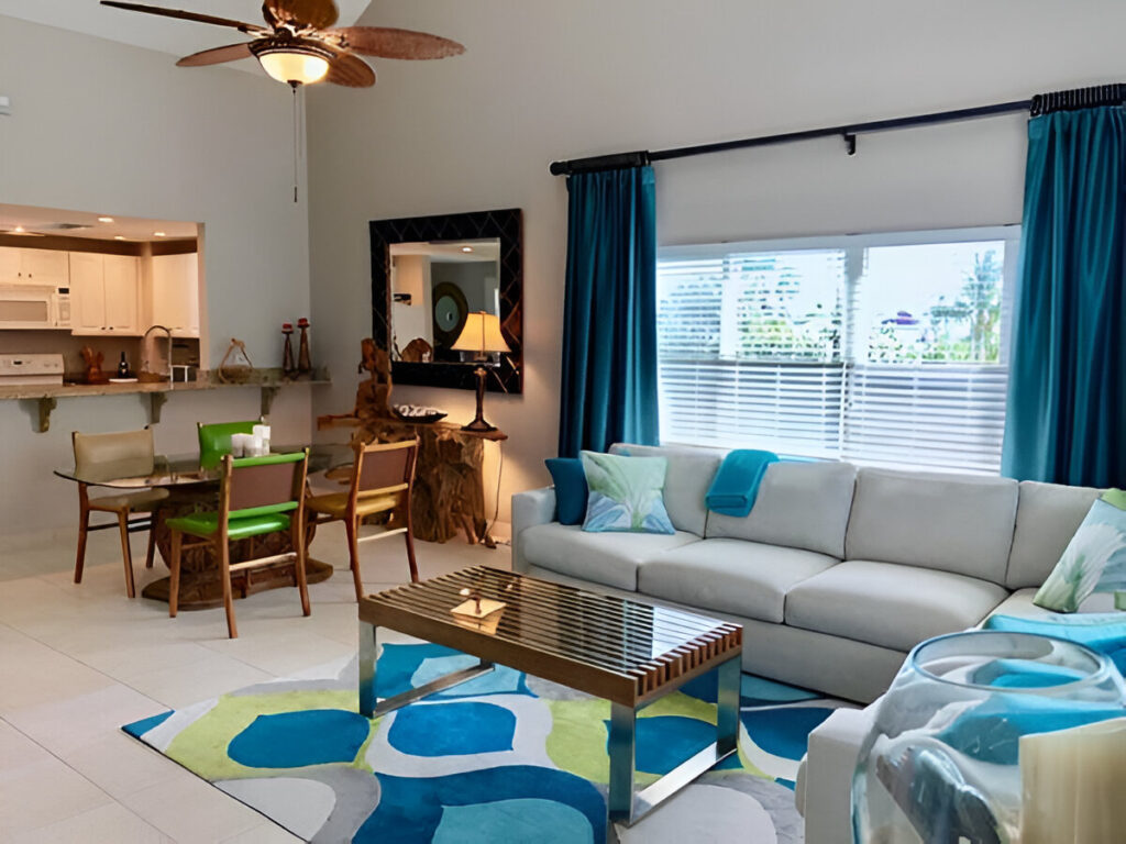 Ground floor, turn-key 1 bedroom with beach views next door to Rum Point Restaurant and Beach and 2 mins drive to Kaibo! Open plan renovated living room, kitchen, dining, leading to the private screened-in patio. One huge bedroom with a king bed. Stunning beach views in a 3 Acre Site with 675 feet of beach frontage. On site Pool, tennis court, gym, game room, two beaches, and Rum Point Club next door. The area directly in front and to the left of the Retreat is a designated and protected marine park. The snorkelling is excellent right in front of the complex. Sunsets are often enjoyed from the private beach all year round. This quieter side of the island provides peace and tranquillity. Head next door to Red Sail for motorized and non-motorized water sport options or excursions to Stingray city or scuba diving when you are ready for some action.