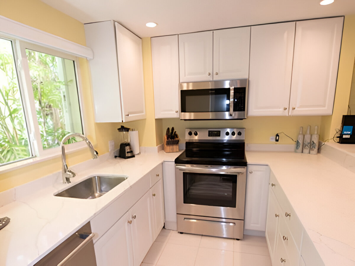 Lovingly renovated in 2010 with teak patio furniture, hardwood bedroom floor (King bed, oversized chair that converts to a twin bed to accommodate a child), Silestone countertops, unusual artworks, instant hot water, comfy sofas (the larger one in the living area converts to a queen bed), fully stocked kitchen with everything you need to make even a thanksgiving dinner.