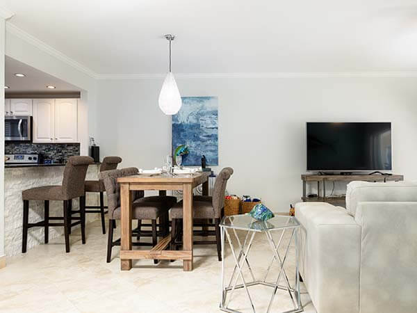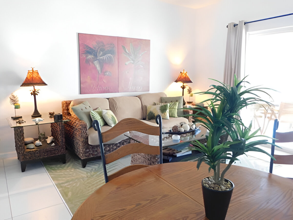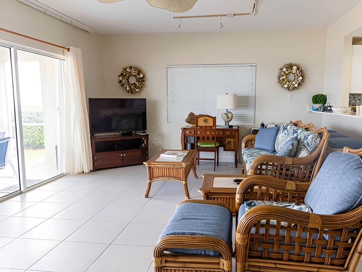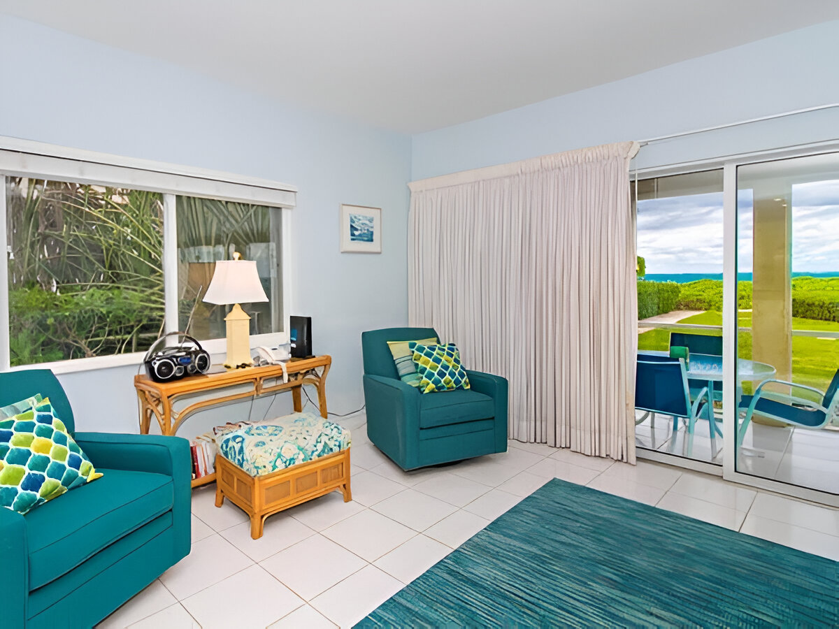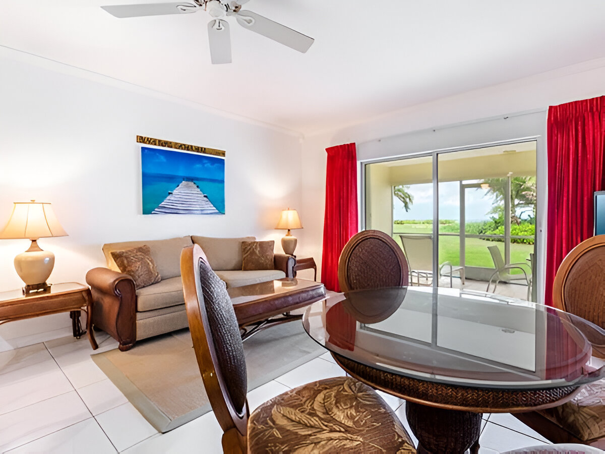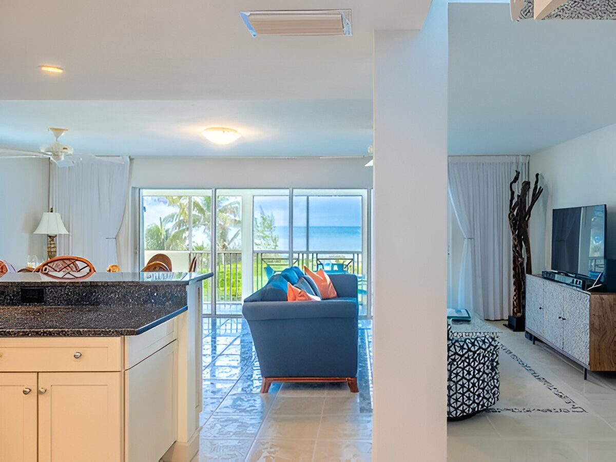 Ground floor, turn-key 1 bedroom with beach views next door to Rum Point Restaurant and Beach and 2 mins drive to Kaibo! Open plan renovated living room, kitchen, dining, leading to the private screened-in patio. One huge bedroom with a king bed. Stunning beach views in a 3 Acre Site with 675 feet of beach frontage. On site Pool, tennis court, gym, game room, two beaches, and Rum Point Club next door. The area directly in front and to the left of the Retreat is a designated and protected marine park. The snorkelling is excellent right in front of the complex. Sunsets are often enjoyed from the private beach all year round. This quieter side of the island provides peace and tranquillity. Head next door to Red Sail for motorized and non-motorized water sport options or excursions to Stingray city or scuba diving when you are ready for some action.